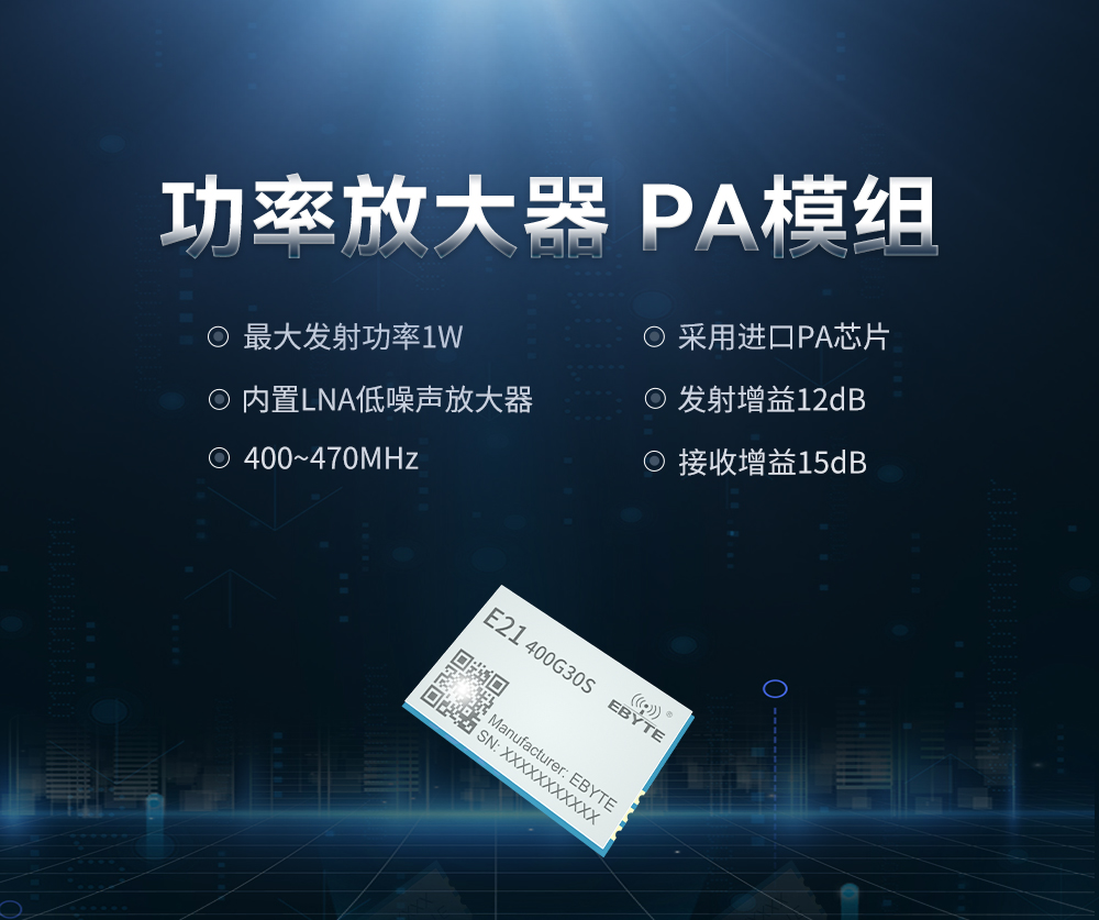 產(chǎn)品簡(jiǎn)介:E21-400G37S無(wú)線模塊是成都億佰特公司推出的一款純硬件射頻中功率放大器(PA),最大輸出功率37dBm,覆蓋頻率范圍 410 ~ 493MHz,模塊內(nèi)置 LNA低噪聲放大器,大幅度提高了無(wú)線之間的通信距離。