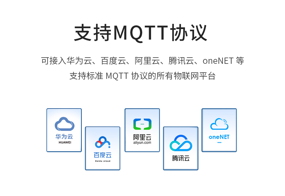 串口服務(wù)器設(shè)備支持快速接入標(biāo)準(zhǔn)MQTT3.1協(xié)議服務(wù)器(OneNET、百度云、華為云、用戶自建等服務(wù)器類型)和阿里云服務(wù)器,支持服務(wù)質(zhì)量等級配置(Qos 0、Qos 1),支持超長文本配置,方便更好的接入網(wǎng)絡(luò)服務(wù)運(yùn)營商(服務(wù)器地址、三要素、訂閱與發(fā)布地址支持最多128字符配置)。