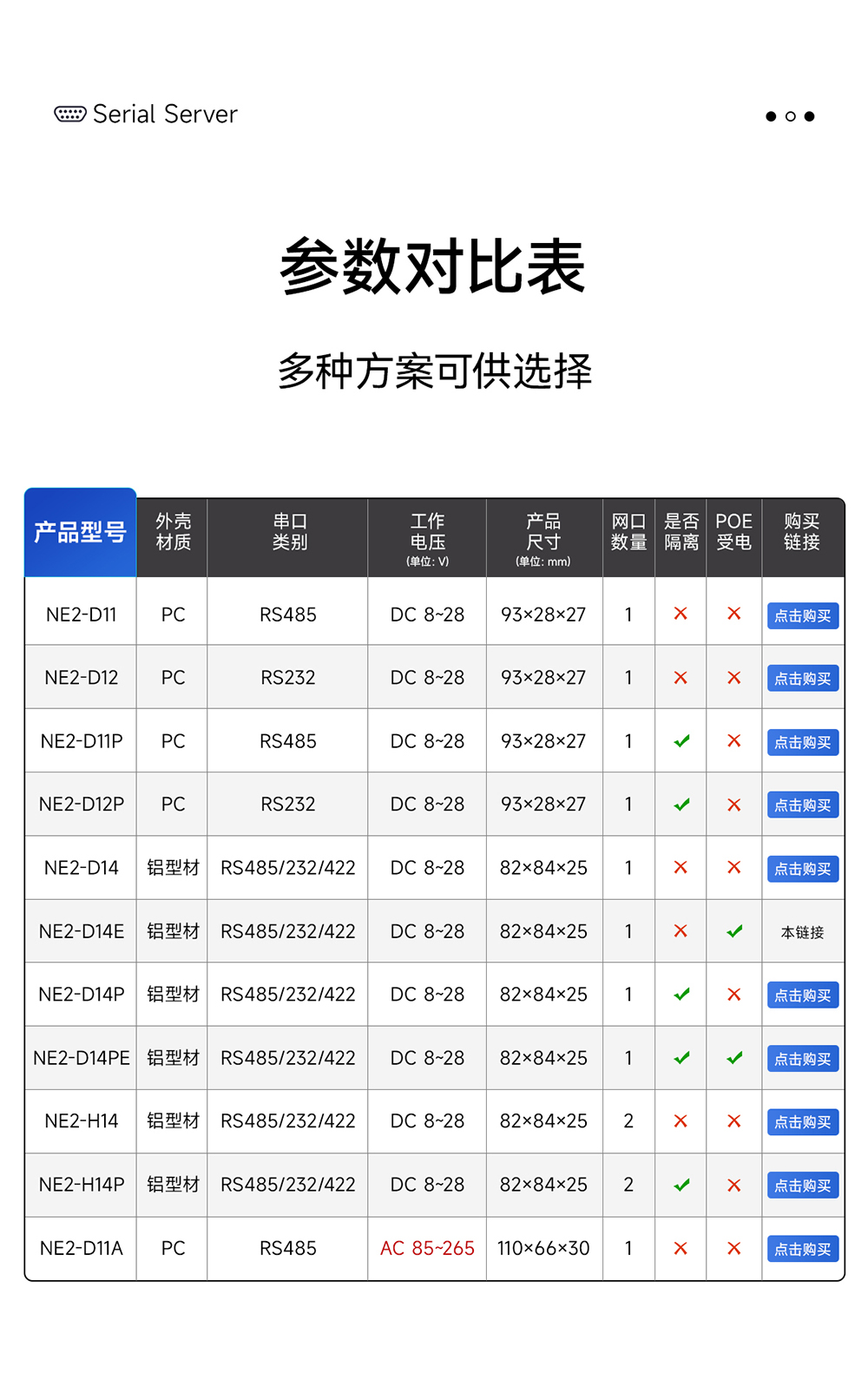 產(chǎn)品簡介:NE2-D14E串口服務器用于實現(xiàn)RS485/RS232/RS422串口到以太網(wǎng)口的數(shù)據(jù)的雙向透明傳輸。具有多種Modbus網(wǎng)關模式以及MQTTC/HTTPC物聯(lián)網(wǎng)網(wǎng)關模式,可滿足各類串口設備/PLC的聯(lián)網(wǎng)功能;采用工業(yè)級設計標準,保證設備可靠性。串口服務器實現(xiàn)串口數(shù)據(jù)到以太網(wǎng)的TCP/IP數(shù)據(jù)包的透明傳輸,用戶無需關心具體細節(jié),設備內(nèi)部完成協(xié)議轉(zhuǎn)換。產(chǎn)品噴涂三防漆,具有“防霉菌”“防潮濕”“防鹽霧”等功能。