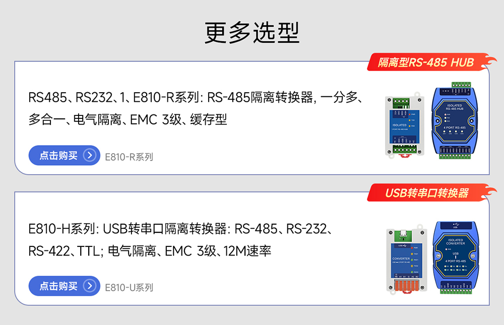 | E810-U21C | RS485 | USB-C | - | 5 | - | 100*54*32 | 1路USB轉(zhuǎn)2路RS485數(shù)據(jù)轉(zhuǎn)換模塊 | ||